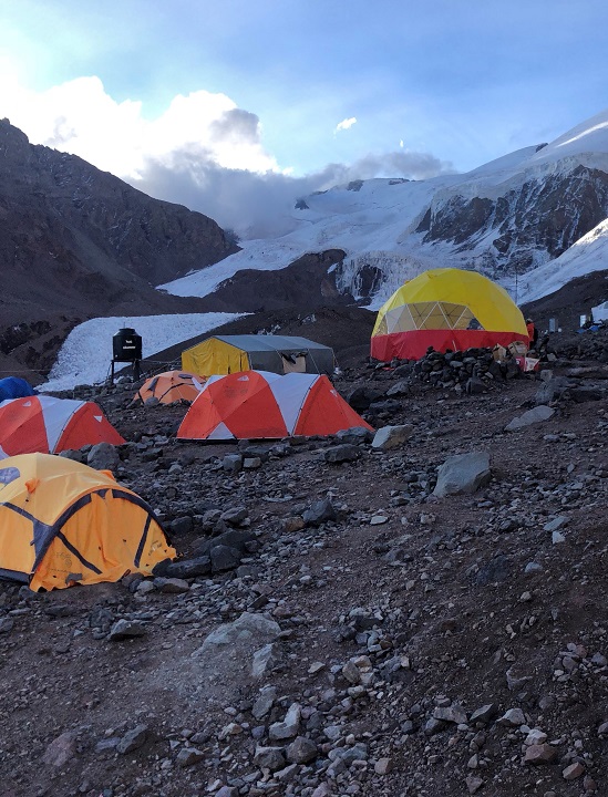 They made camp in the Plaza de Mulas as they prepare to push on to the summit – which, at 6,962 metres, is the highest in the southern hemisphere.