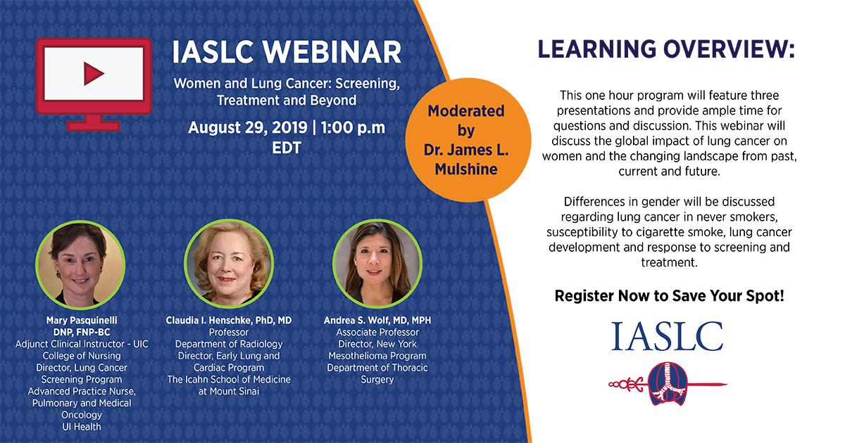 On the 29th of August 2019, the IASLC will hold a one-hour webinar entitled ‘Women and Lung Cancer: Screening, Treatment and Beyond.’