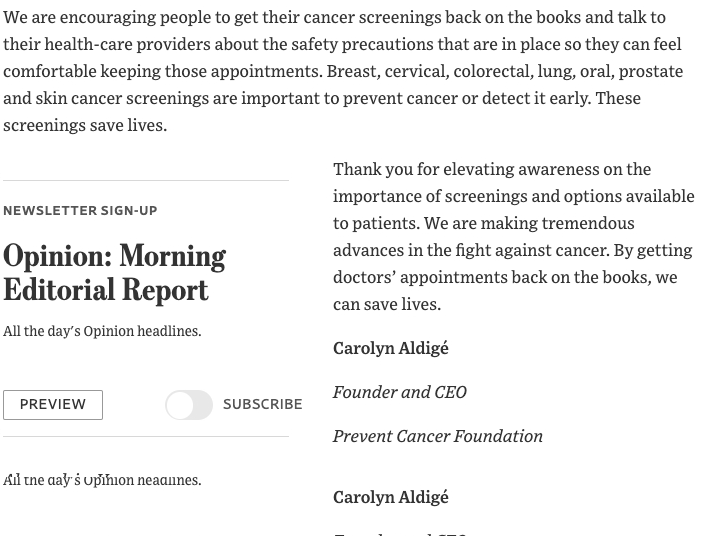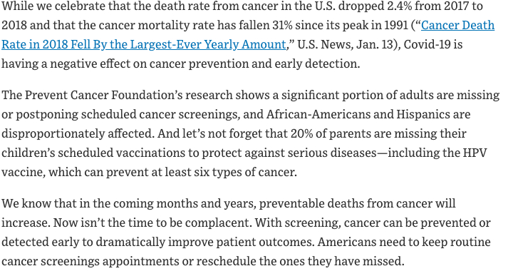 Now isn’t the time to let up on lung cancer screening – Prevent Cancer Foundation in the WSJ