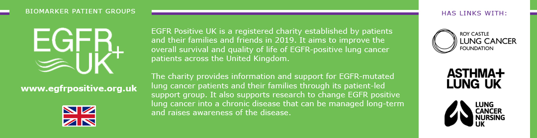 “EGFR Positive UK is a patient-driven charity committed to providing information and support for EGFR-mutated lung cancer patients and their families.